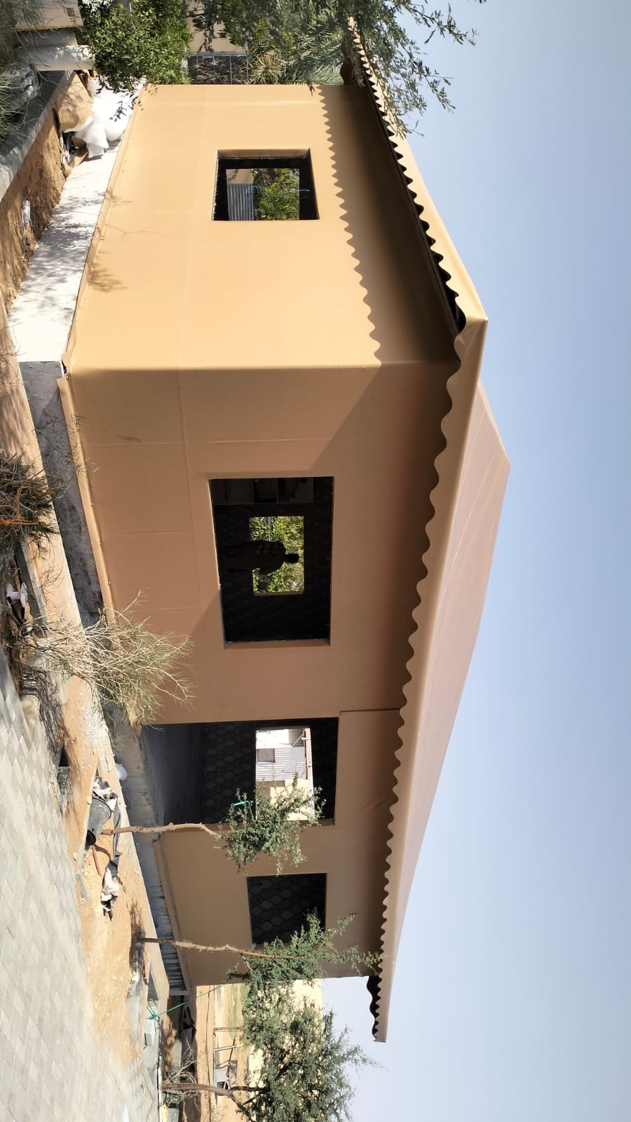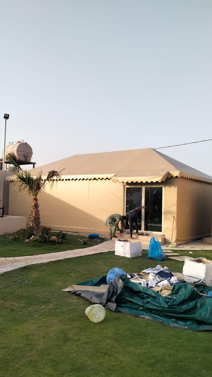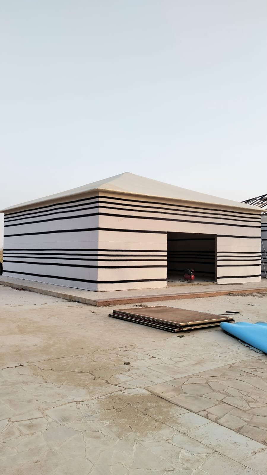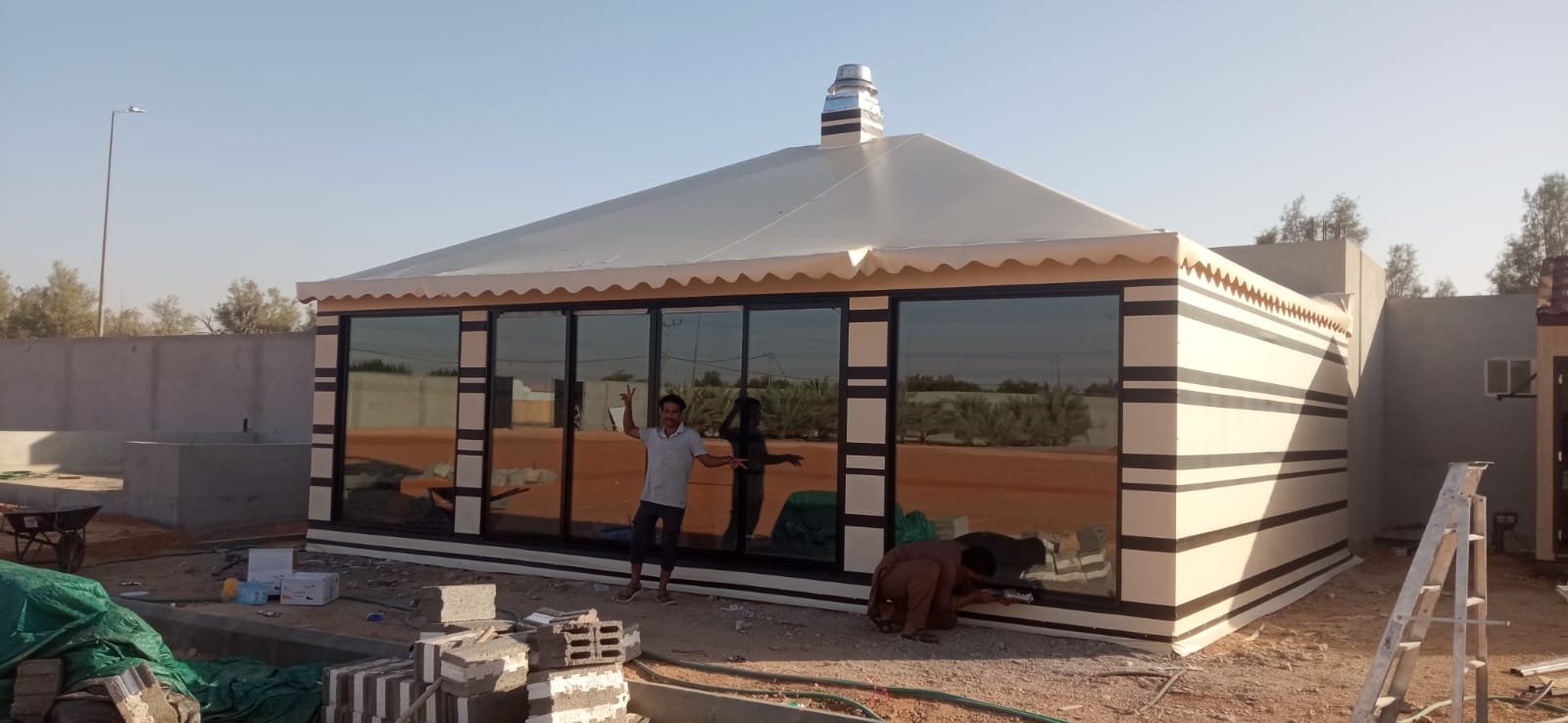الخيمة عبارة عن هيكل قماشي يُستخدم بشكل مؤقت أو دائم، ويُصمم غالبًا من القماش المقاوم للعوامل الجوية، مع دعم معدني أو خشبي. تُستخدم في الفعاليات، الجلسات الخارجية، والضيافة المؤقتة.